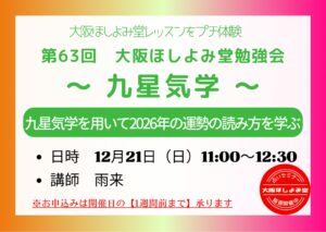 - 『九星気学』12月定例勉強会のお知らせ - 2025年10月12日